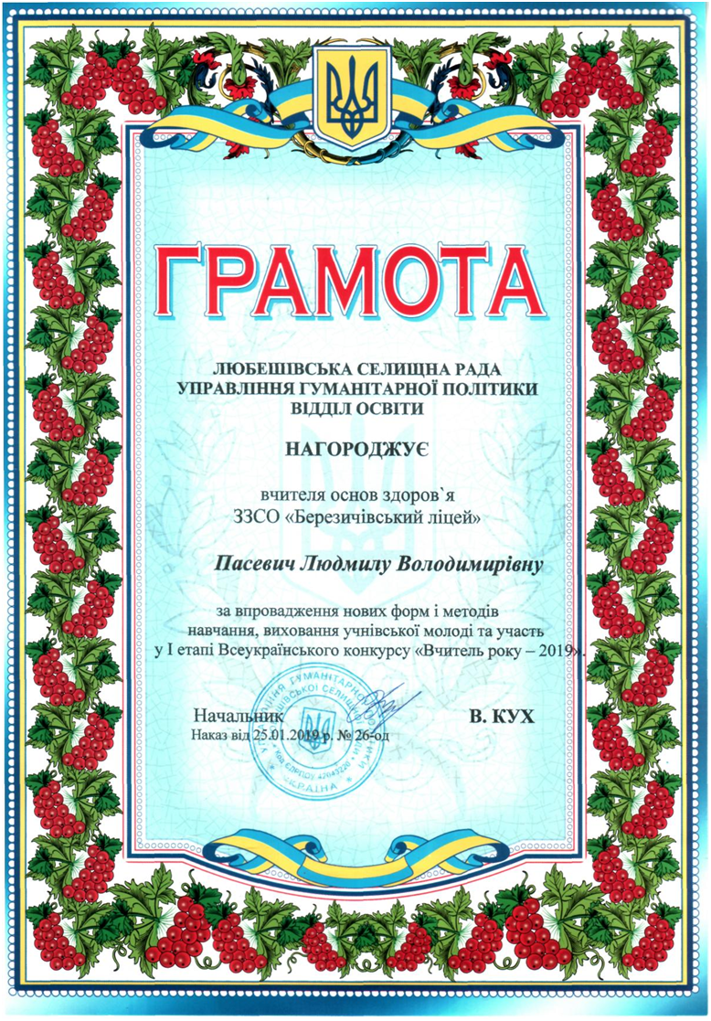 Вчитель біології та основ здоров’я Пасевич Людмила Володимирівна ЗЗСО «Березичівський ліцей» Докладніше